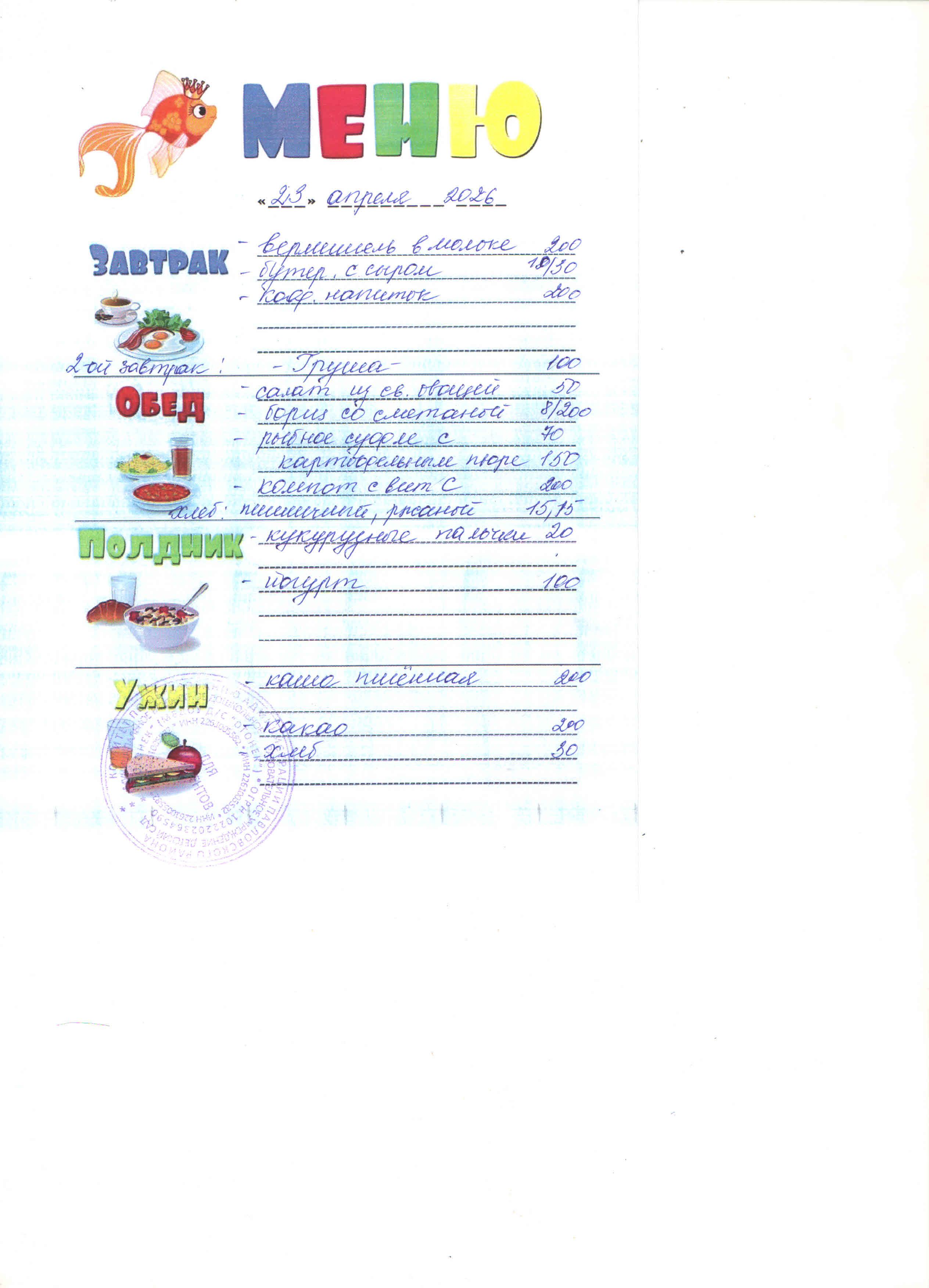 В детском саду имеется вся необходимая документация по питанию, которая ведется по форме и заполняется своевременно.